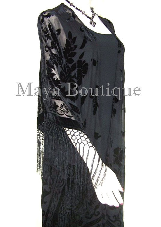 SILK BURNOUT VELVET KIMONO DUSTER FRINGE JACKET