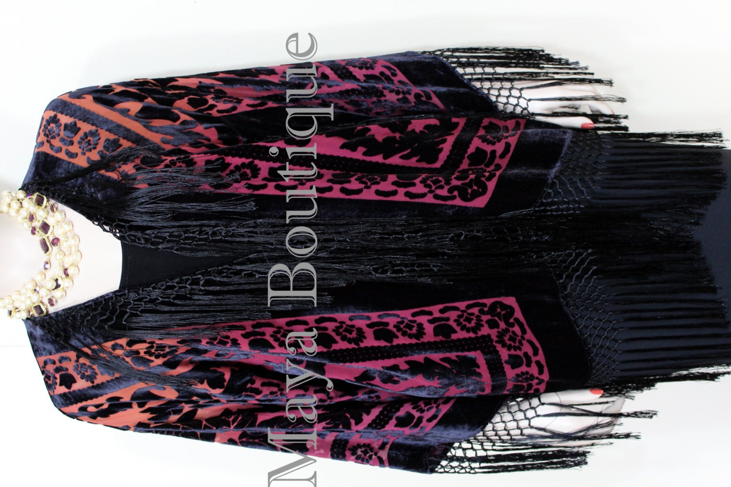 Inspired by the french 20's fringe burnout rayon velvet jacket